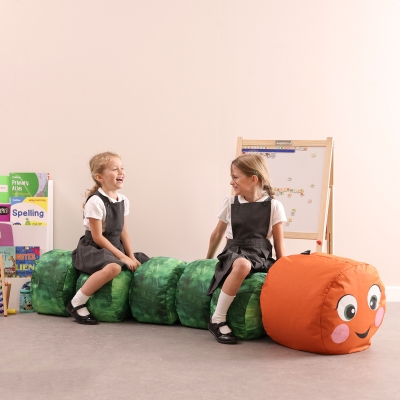 Caterpillar design stool set to seat multiple children, perfect for themed classrooms, group activities, and integrating into learning plans.
